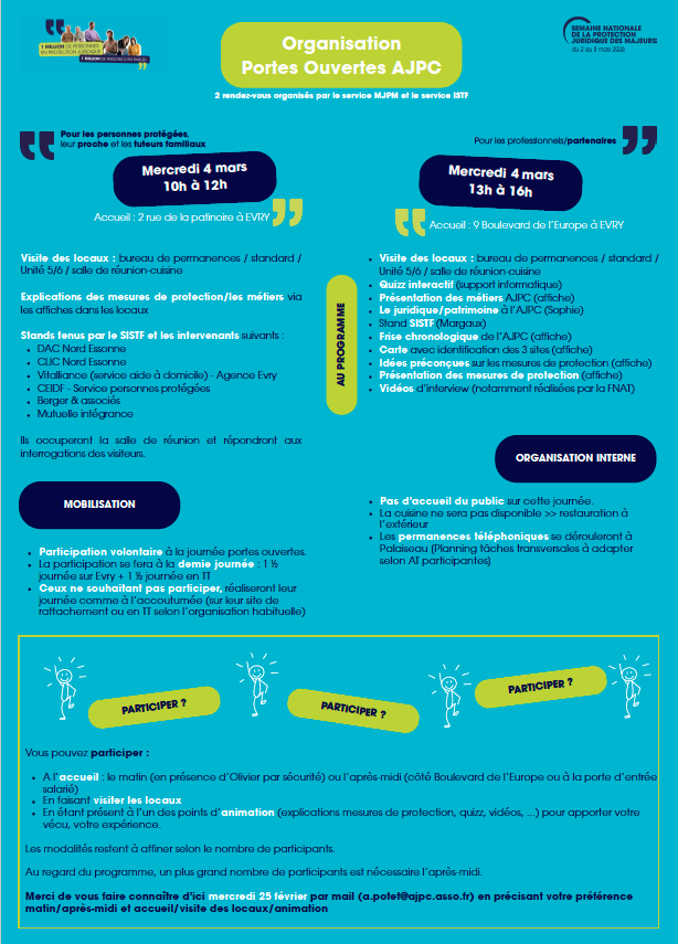 La deuxième édition de la Semaine Nationale de la Protection Juridique des Majeurs (SNPJM) se tiendra du 2 au 8 mars 2026. L’AJPC vous en parle déjà…